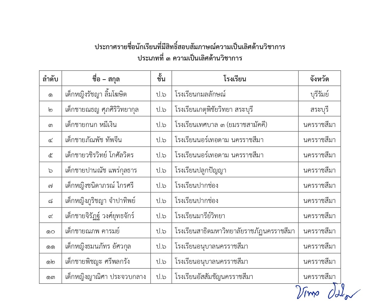 ประกาศรายชื่อนักเรียนที่มีสิทธิ์สอบสัมภาษณ์ความเป็นเลิศด้านวิชาการ