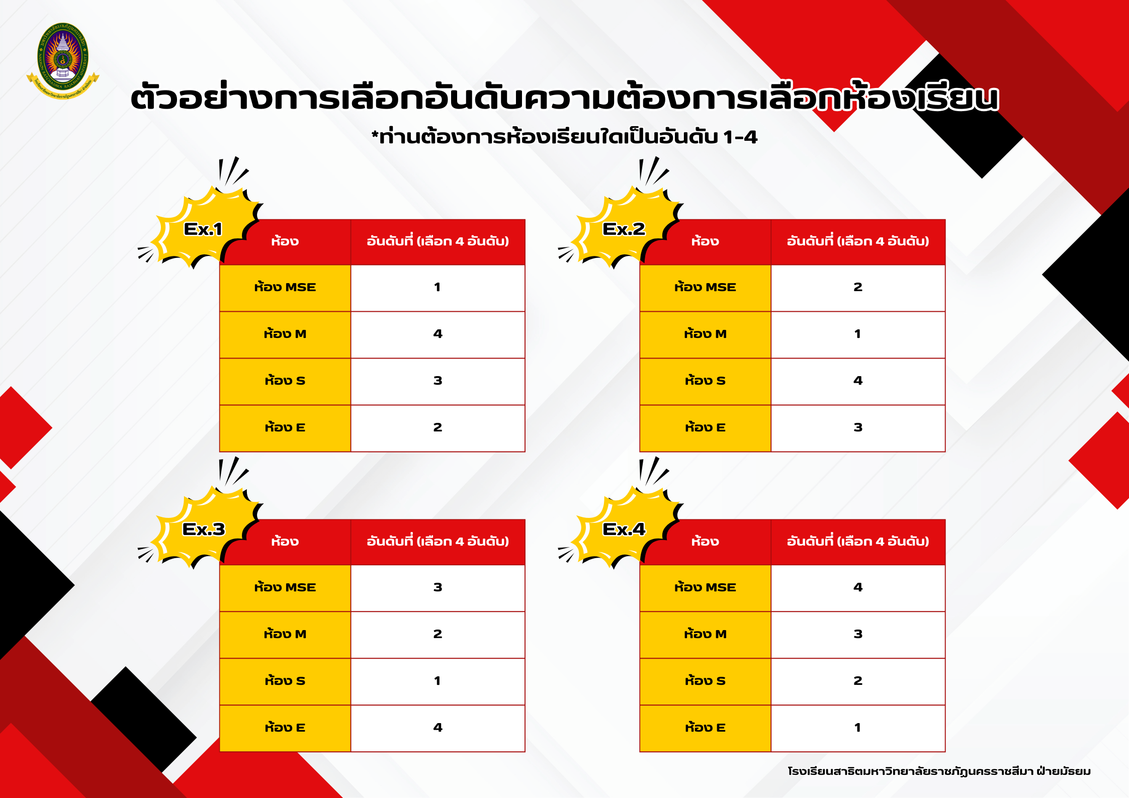 หนังสือแจ้งอันดับความประสงค์เลือกห้องเรียน